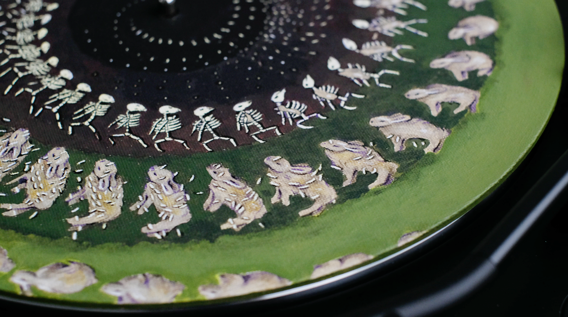 An animation painted on canvas, that plays on a turntable.